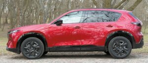 Dla wielu kierowców najważniejszy w samochodzie jest silnik. I właś nie takim fanom czterech kółek – wymagającym i często konserwatywnym – wychodzi naprzeciw japońska marka. W dobie gdy producenci jak jeden mąż zmniejszają pojemność spalinowych silników, dokładając im turbodoładowania, Mazda rozwinęła spory, wolnossący motor. Jest nim czterocylindrowa 2,5-litrowa benzynowa jednostka, wspomagana układem miękkiej hybrydy. Co ważne – to jedyna dostępna opcja w nowej CX-5. Wybór polega jedynie na napędzie: na przednią oś lub (po dopłacie 8 tysięcy złotych) na obie. Świetnie, że nie zrezygnowano z wariantu 4 x 4, bo nie ma zgrzytu z nazywaniem CX-5 SUV-em, co w wypadku wielu teoretycznie konkurencyjnych modeli bywa kłopotliwe. Gorzej, że zestaw ma łącznie raptem 141 koni mechanicznych. O ile ten parametr „na papierze” wygląda po prostu kiepsko, o tyle osiągi są już powodem do wstydu. Wersja 4 x 4 potrzebuje na rozpędzenie się do pierwszej setki prawie 11 sekund. Katastrofa?! Nie do końca… Jasne, nie ma co zakłamywać rzeczywistości i większy zapas mocy przyjąłbym w CX-5 z pocałowaniem ręki, bo niedobór czuje się np. przy autostradowych wyższych prędkościach, kiedy japońskiemu SUV-owi zaczyna brakować pary, ale nie jest tak, że Mazda jest ślamazarnym autem. Przeciwnie, gdybym wcześniej nie słyszał o specyfice japońskiego silnika, szacowałbym jego moc na znacznie wyższą. Powiem więcej, CX-5 jeździło mi się przyjemnie i szczerze polubiłem się z tym napędem.