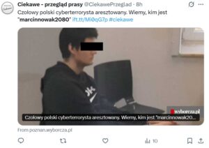 Część czynów popełnił jako nieletni. Mimo prób maskowania tożsamości chwalił się swoimi działaniami w internecie, co ostatecznie doprowadziło do jego ujęcia przez poznańskich policjantów.